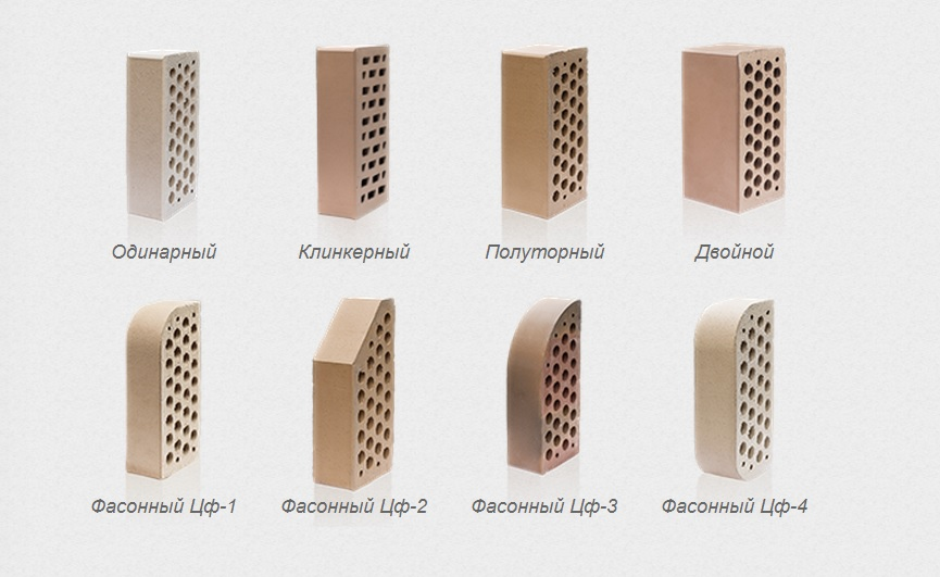 Разнообразие типов и размеров кирпича