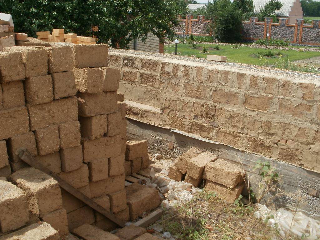 Особой хрупкостью большие саманные блоки не отличаются. Однако вес такой строительный материал имеет значительный. Поэтому фундамент под такие стены нужно делать прочный и максимально надежный — широкий ленточный. Перед возведением коробки такое основание обязательно следует тщательно гидроизолировать.