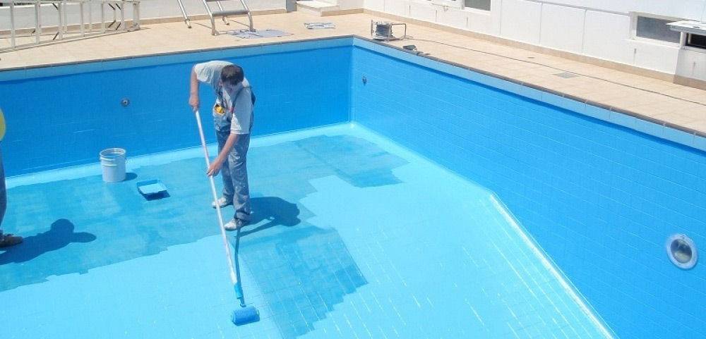 - Красящий раствор используется в обработке внутренних поверхностей бассейнов и прудов, созданных искусственным путём.