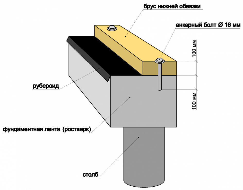 Общая высота определяется с учетом тяжести постройки и несущей способности почвы. Конструкция получается частично заглубленной. Данная модель представляет собой ростверк, связанный с грунтом.