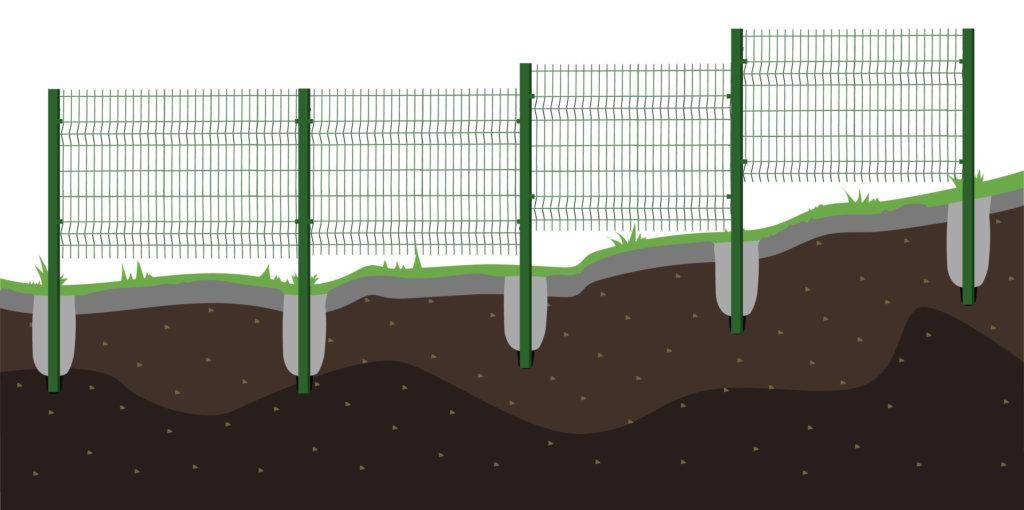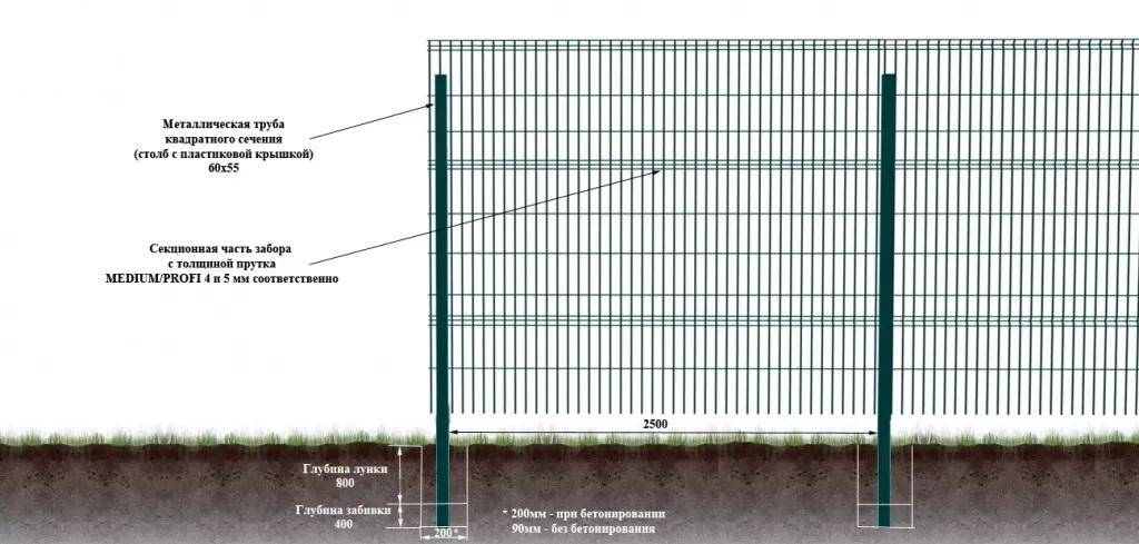 Секционные заборы собирают по своей, индивидуальной, технологии, а раскладка столбов зависит от длины секции.