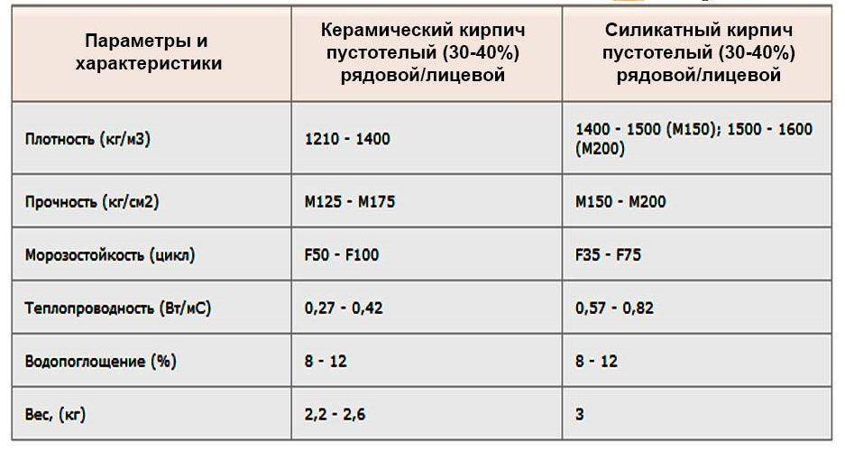 Выбрать, какой кирпич лучше для конкретных условий применения, можно на основании сравнения технических характеристик материалов.