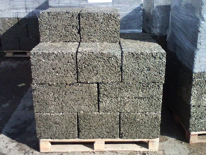 После укладки смеси в металлическую форму, ее вибрируют на станке, после чего готовый блок укладывают под навес на 3 недели для набора марочной прочности.