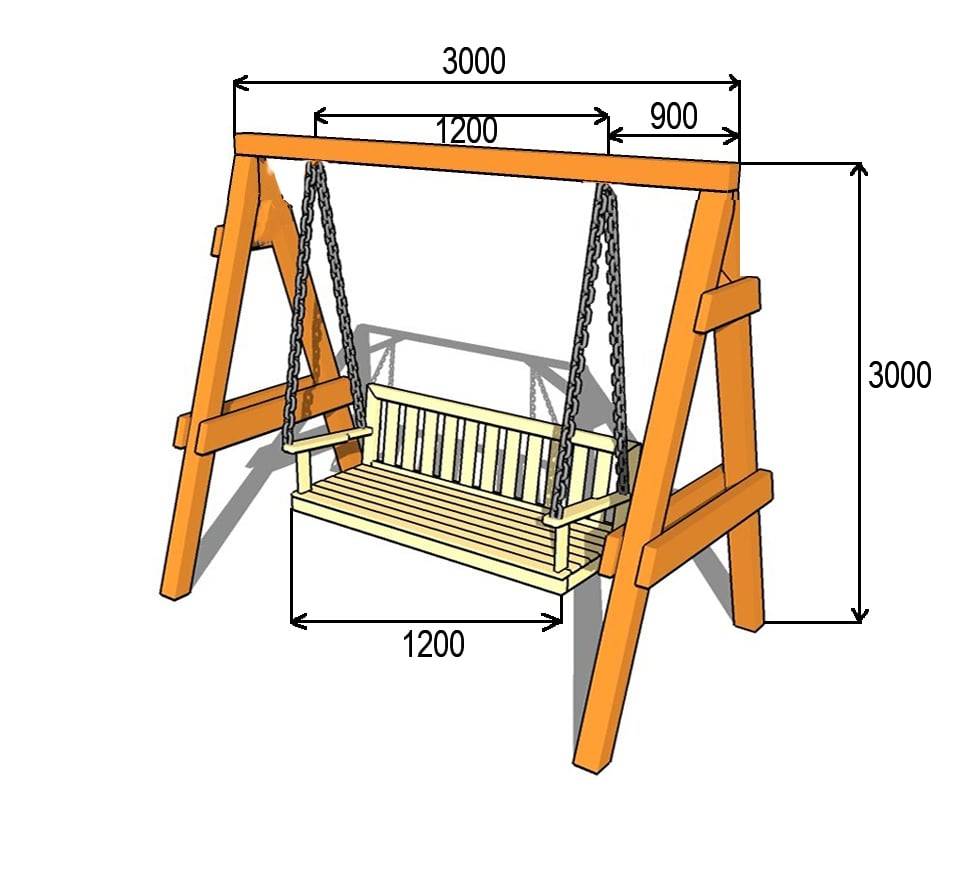 Поскольку качели имеют подвижную деталь – лавку, то нужно просчитать максимальную силу их раскачивания. В худшем случае лавка будет постоянно что-то задевать и быстро испортится.