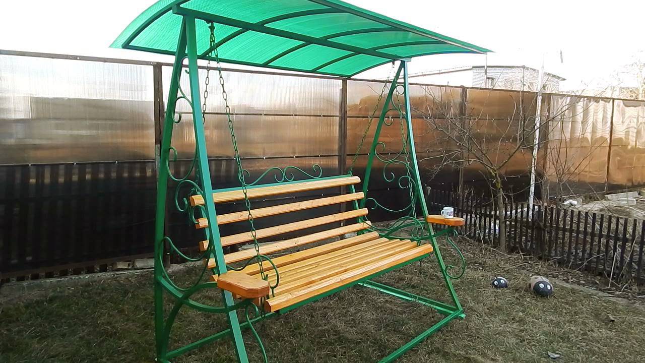 Часто можно встретить садовую качель из пластика, однако, вероятно, они являются покупными. Потому что изготовить самостоятельно такие очень сложно. Как вариант, вы можете использовать металл.