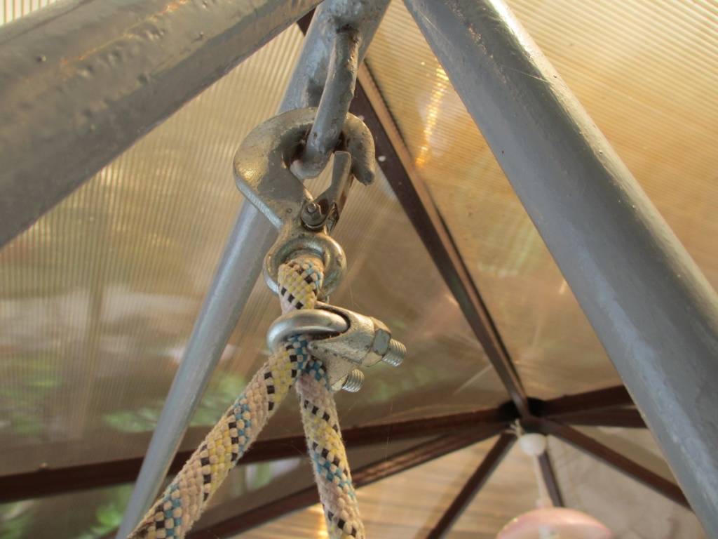 Если вы все же выбрали трос, важно добавить прокладку из полиэстера там, где он будет скрепляться с поперечной балкой. Это нужно, чтобы материал не стерся со временем.