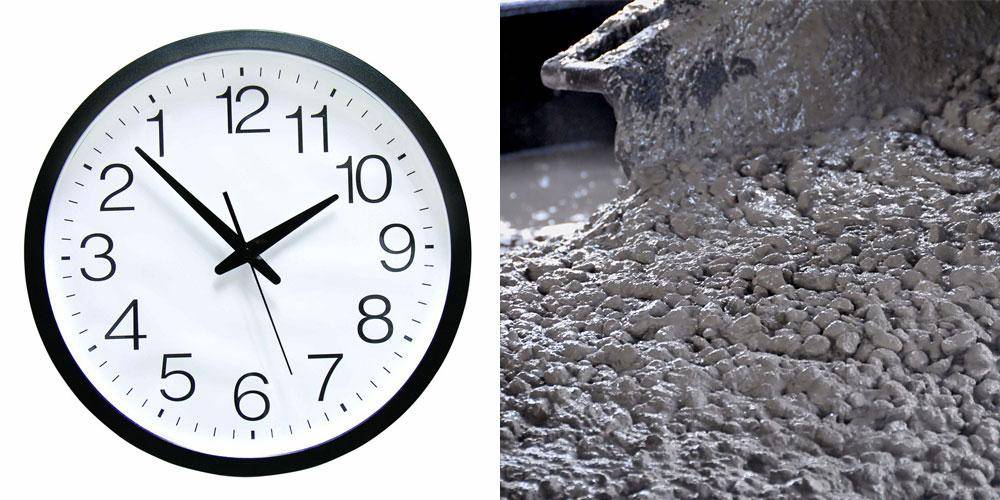 Работы с бетоном требуют точно рассчитать период схватывания и затвердевания раствора. Прочная конструкция – это соблюдение времени высыхания смеси, и от этого зависит минимизация разрушения конструкции.