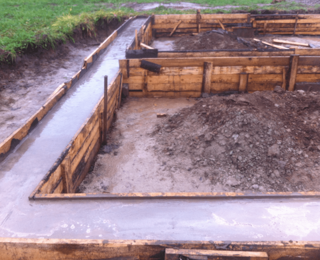 Как я уже писал, чаще всего я заливал фундаменты бетоном, изготовленным в бетономешалке или даже просто лопатой в большом корыте. Такие бетоны я использовал в фундаментах душевой кабины, сарая и даже бани.