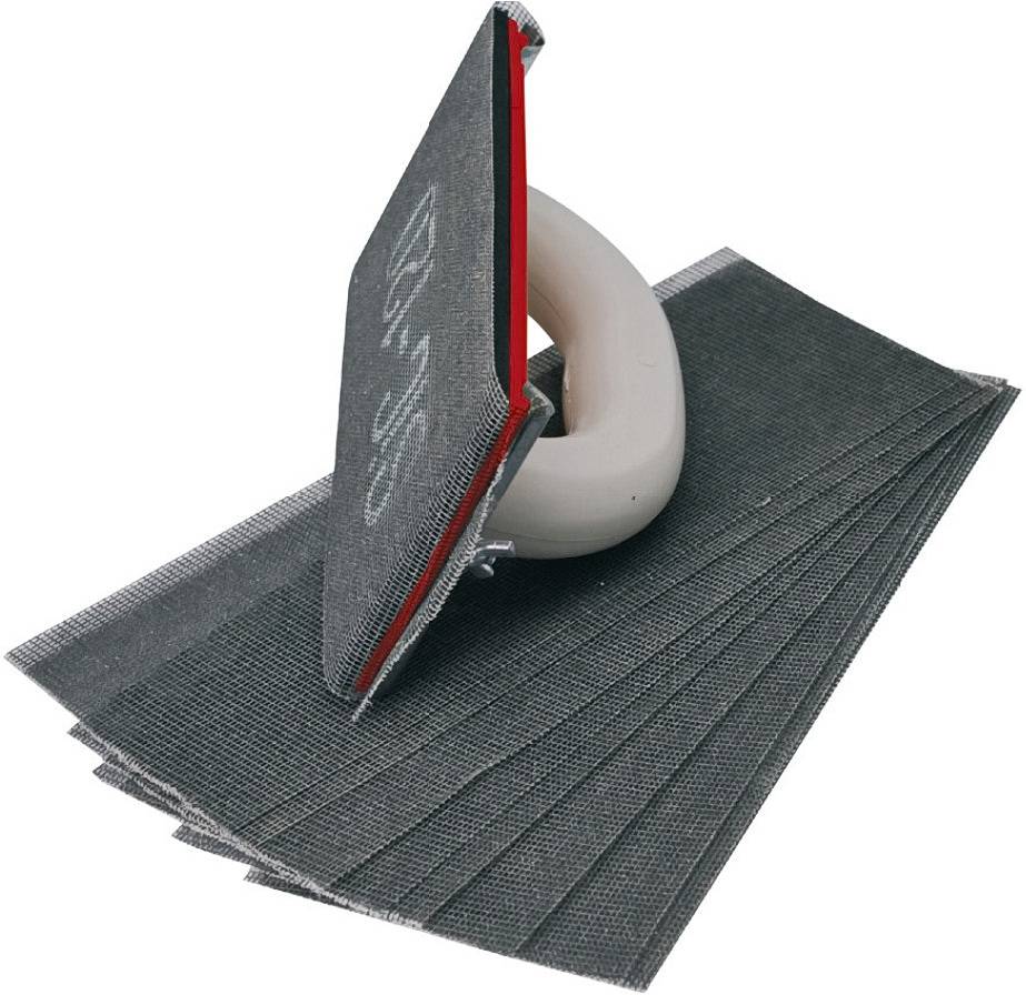В то же время, использование бумаги с абразивным нанесением – не единственный вариант того, как правильно шкурить шпаклевку на авто. Кроме того, есть также специальные сетчатые приспособления. Их делают из высокопрочного полиамидного или нейлонового материала, который соединяют перекрестными волокнами. К ним крепятся абразивные элементы (оксид алюминия).