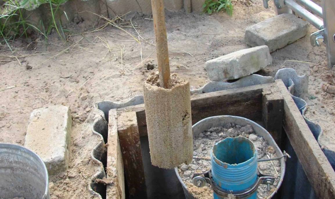 Желонка – это металлическая труба с припаянными на конце зубьями из твердой стали. Чуть выше в трубе находится клапан, который перекрывает выход грунту при подъеме устройства с глубины. Принцип работы простой – желонку устанавливают в нужном месте и вручную поворачивают, постепенно углубляя в почву. Способ занимает больше времени, чем использование электрического оборудования, но он экономный.