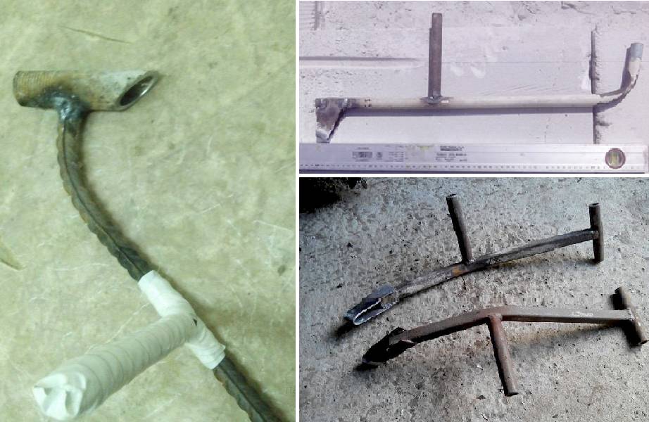 - Более сложный и удобный инструмент можно сделать из двух кусков арматуры или обычной металлической трубы.
