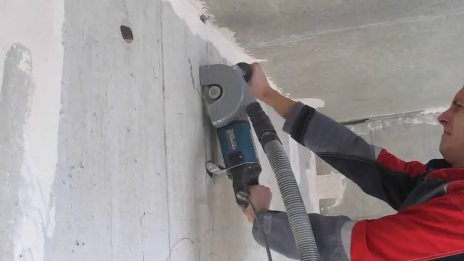 - Для качественного фрезерования бетона первый заход производят, передвигая инструмент параллельно стене, что даст возможность следующие проходы делать ровно (останутся бороздки для ориентирования)