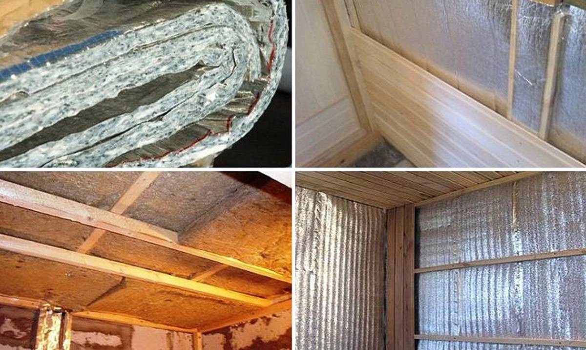 На стены крепится каркас из бруса 50×50 см с промежутками несколько меньше ширины полотен утеплителя. После этого укладывают утеплитель и укрывают фольгой, закрепляя в нужных местах.