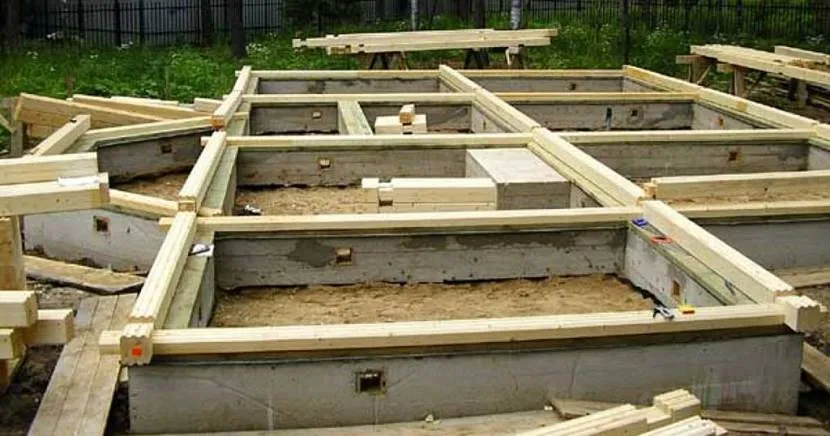 Для постройки дома оптимальным фундаментом считается ленточный. Для его обустройства убираются камни, растительность, выравниваются бугры и ямы. Когда участок выравнен, проводится разметка территории. После этого роется траншея, глубина которой зависит от высоты будущей постройки и грунта, ширина минимум 25 см. Профилированный брус достаточно легкий, поэтому для одноэтажного строения можно использовать мелкозаглубленный фундамент.