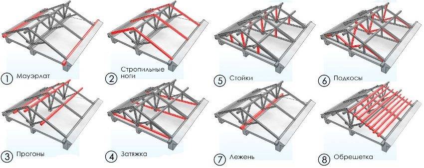 Помимо них имеются ещё 2-3 единицы необходимых компонентов. Составляющие такого комплекса стропил: