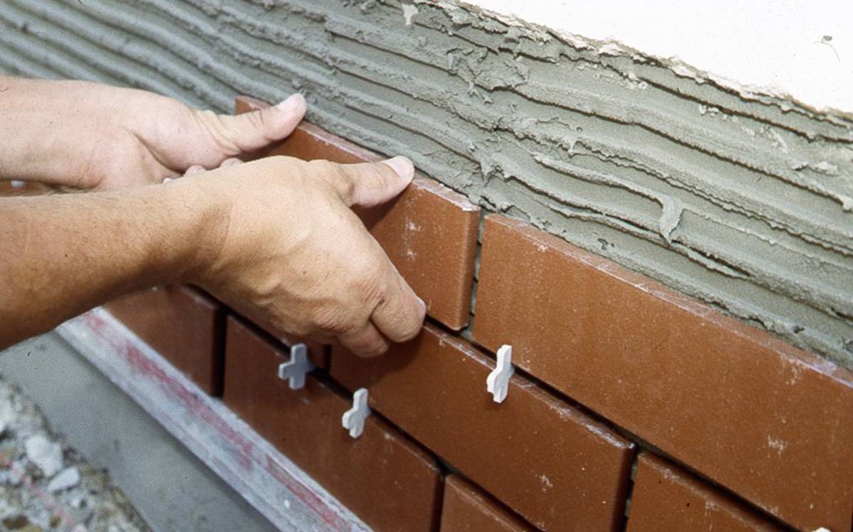 - Трафарет — пластиковая или силиконовая форма с ячейками. Кирпич прикладывается к основанию, слегка вдавливается в раствор, затем удаляется. Линии получаются идентичными, а кирпичи — равного размера.