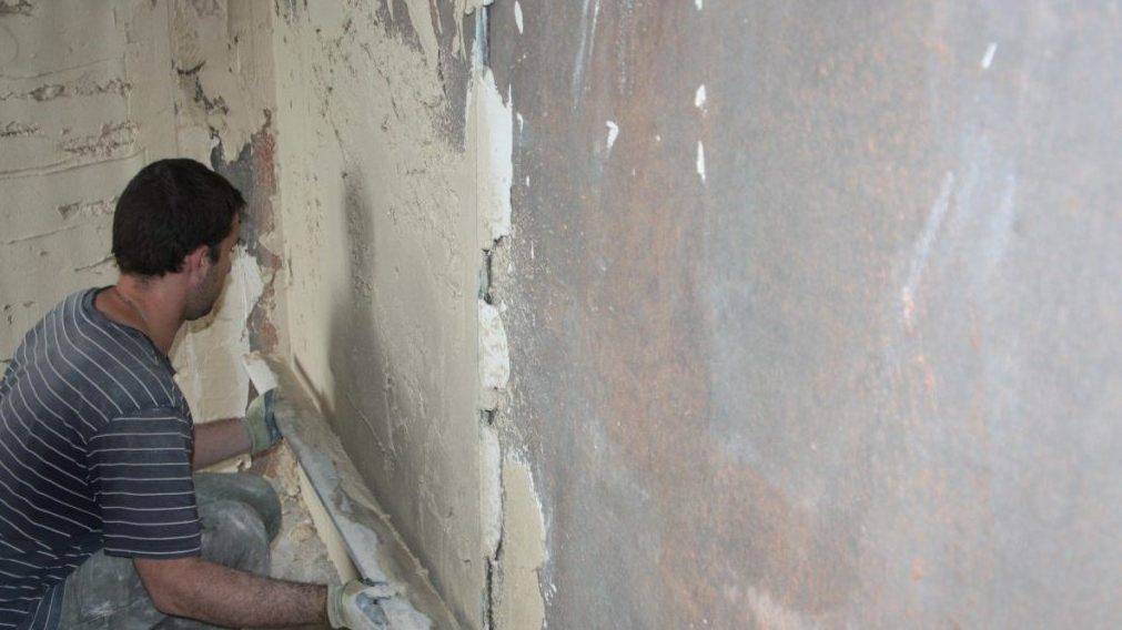 - Простучите всю плоскость, с которой предстоит работать. Вы не должны слышать пустоты под штукатуркой, если, конечно же, ранее стена уже штукатурилась. Если полость присутствует, этот участок необходимо сбить до тех мест, где наблюдается хорошая прочная сцепка раствора со стеной, иначе все то, что вы накинете, в скором времени может отвалиться из-за большого веса.
