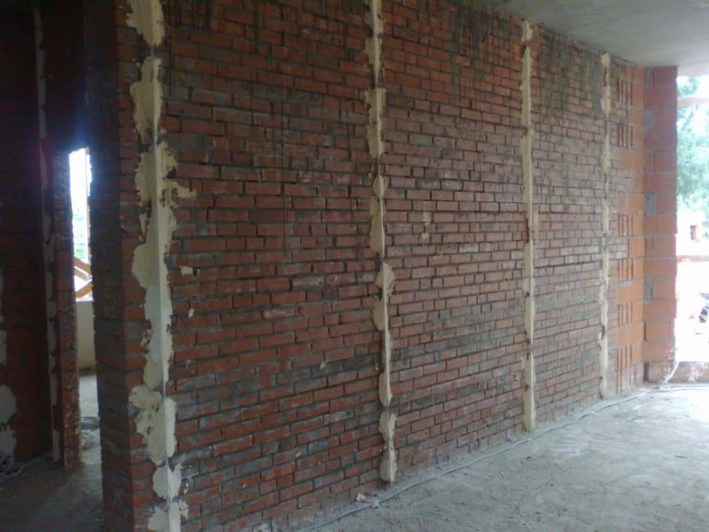 Именно этим способом можно убрать значительные неровности стены. Маячковые профили послужат ограничителем, чтобы работы были выполнены идеально ровно с допуском в 1 мм/кв.м.