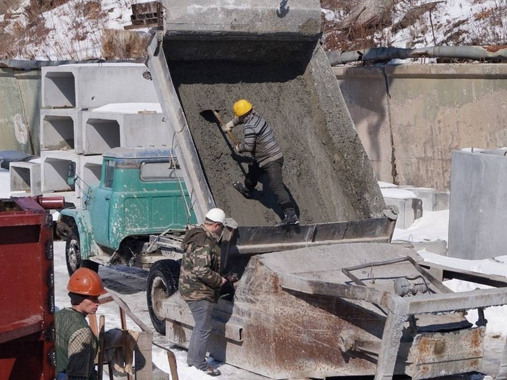 На объекте материалы выгружались самосвалом в бадью и подавался к месту производства работ. Перед использованием, доставленный материал перемешивали лопатами в малых емкостях. Бетонную смесь никто не перемешивал. Ее загружали в подготовленную опалубку и обрабатывали глубинным вибратором. Качество работ при этом было весьма относительным.