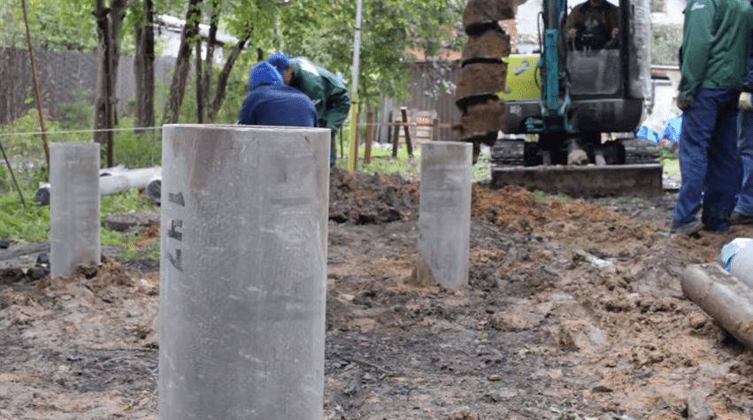 Принцип работы специалистов достаточно просто описать. На указанную в проекте глубину погружают обсадную трубу, затем в пустое пространство вставляют конструкцию из металлических прутов.