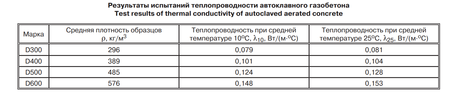 Теплопроводность газосиликатных блоков: коэффициент теплопроводности в таблице