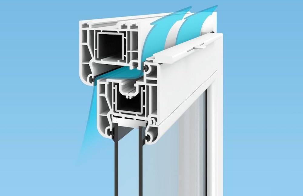 - внутри рамы ставят воздухоносные трубки, поэтому уличные потоки не реагируют напрямую с профилем.