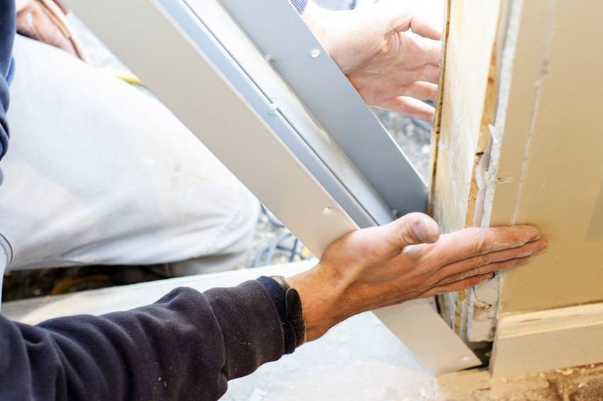 - удаляются наличники, старая монтажная пена, утеплитель, куски оставшейся на откосах штукатурки, распорные клинья, а также срезаются все выступающие металлические элементы. Порог разбирается;
