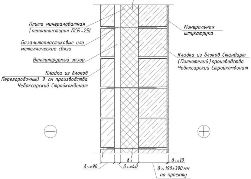 2. стены дома в 40 сантиметров с облицовочной кладкой