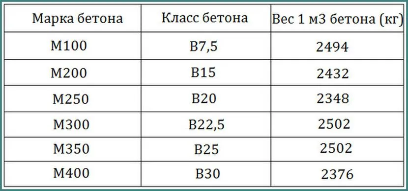 Сравнительная таблица объёмного веса тяжёлых бетонов Источник eyecorrector.ru