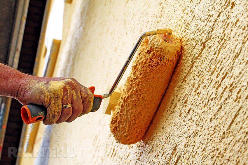 Если используется жесткий валик для декоративной штукатурки, то процесс происходит так:
