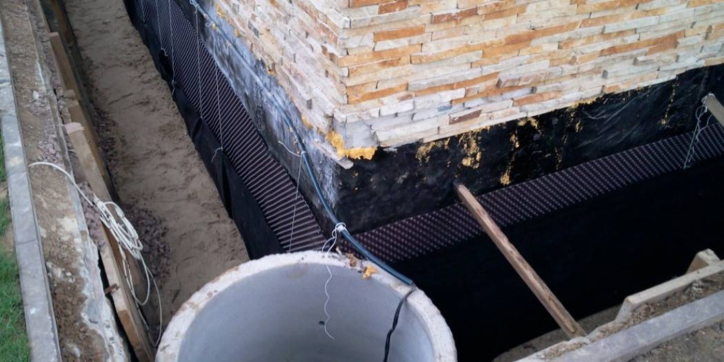 Могут быть использованы как традиционные способы — обмазка горячим гудроном, битумом, оклейка рубероидом и т.д., так и более современные методы пропитки или напыления резино-битумной жидкой эмульсии или пенополиуретана.