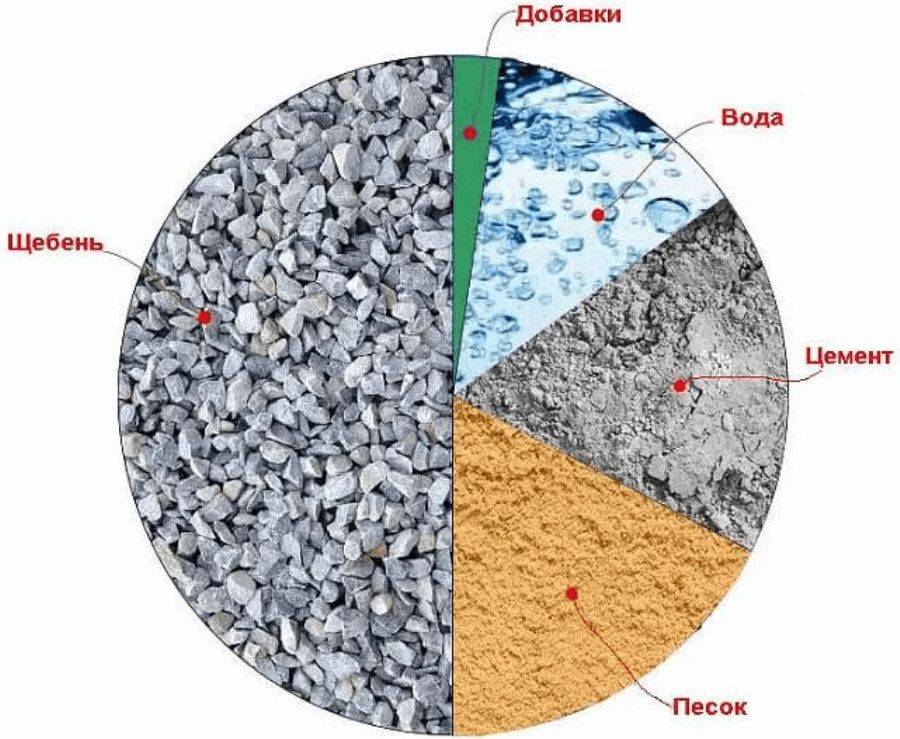 К примеру, стандартная рецептура включает в себя: 1200—1300 килограмм гравия или щебня, 600-700 килограмм песка и всего лишь 250-450 кг цемента. Объем воды 150-200 л.