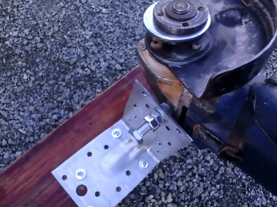 - Закрепить уголки перпендикулярно к арматуре. Второй вариант — прикрепить их к мотору, а уже после этого к профилю.
