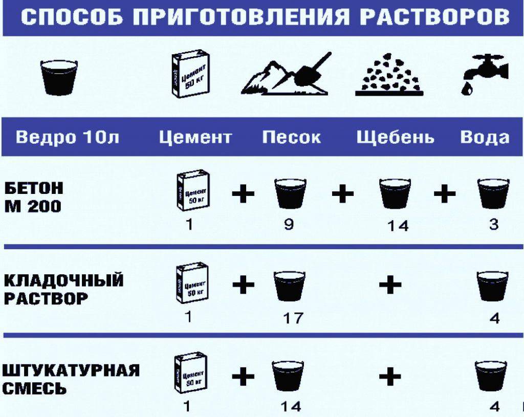 Основное внимание уделяется пропорции между водой и цементом. Цемент нужно брать свежий, с маркировкой М300-М400, реже М200 (b15)