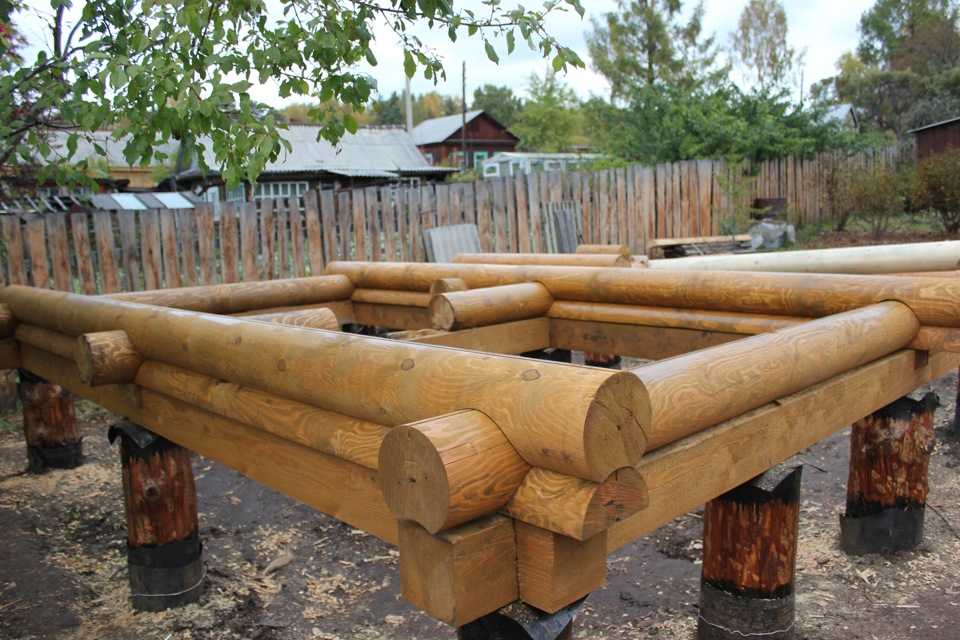 Фундамент под баню на лиственничных столбах.Это интересно! Технология изготовления клееного бруса заключает в себе склеивание высушенных и строганных досок. Для работы применяются био- и водостойкие клея, что повышает долговечность и эксплуатационные характеристики изделия.