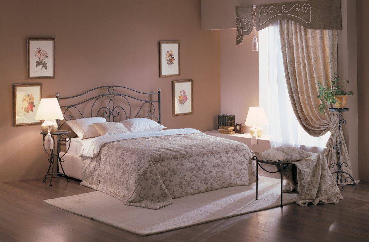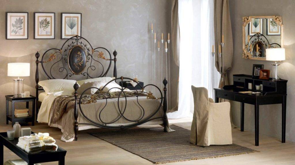 С особым вкусом подбирается текстиль, форма одеял, подушек. Кованая кровать будет гармонировать со стилистикой помещения, если выбирать растительные орнаменты, гобелен.