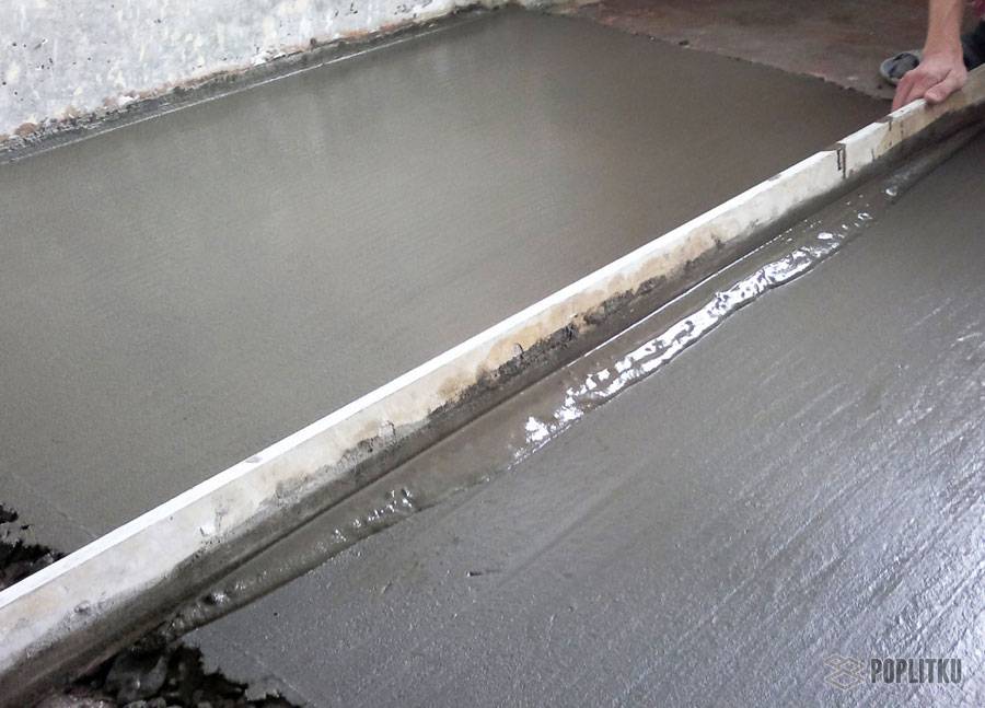 Непременно следует установить маяки, которые должны быть извлечены опосля высыхания стяжки, опосля выравниваются цементным раствором.