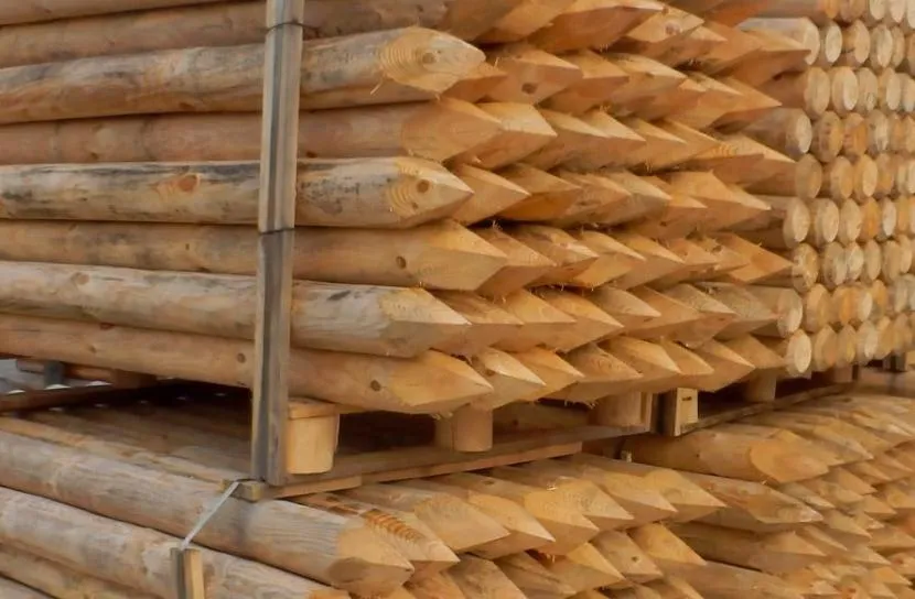 Изначально в качестве точечных опор под здания применялись бревна из древесного массива. Сегодня этот материал также пользуется спросом. Для производства свай используются только твёрдые породы. Заготовки с корневого торца заостряют, на него насаживают погружаемый в грунт металлический конус. Верхняя часть во избежание растрескивания защищается (стягивается) металлическим кольцом. Для надёжности свайный фундамент забывается из пакетов. Это несколько связанных между собой столбов.