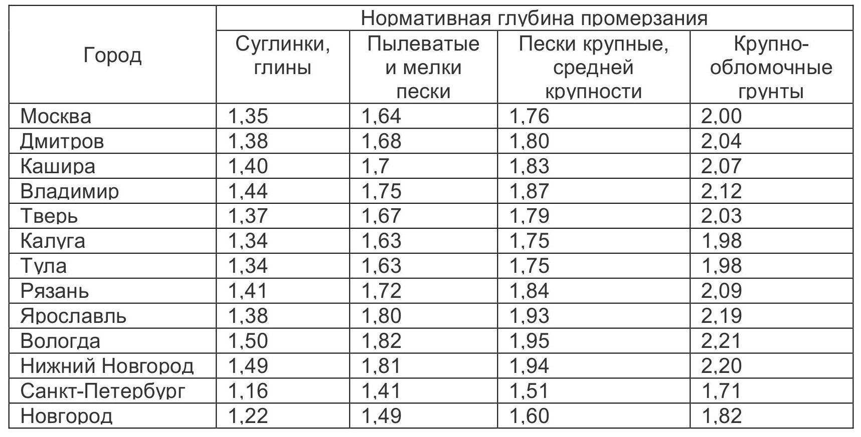 Для регионов с зимней температурой до -25°С фундамент стоит заглублять на 40 см.