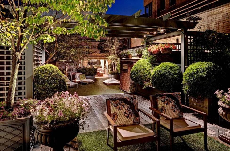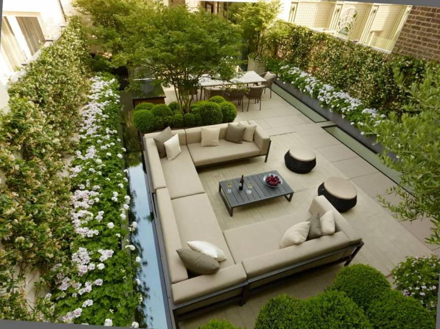 Композиции радуют глаз сочной зеленью. Прямо из спальни или гостиной можно попасть в небольшой уютный садик, посидеть в беседке, послушать шум листьев и журчание маленького водопадика.