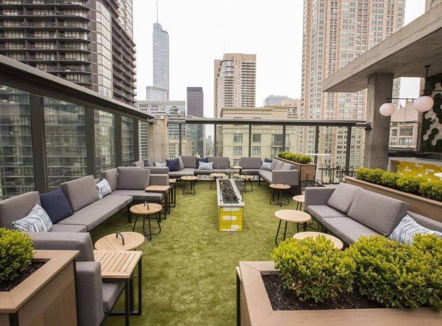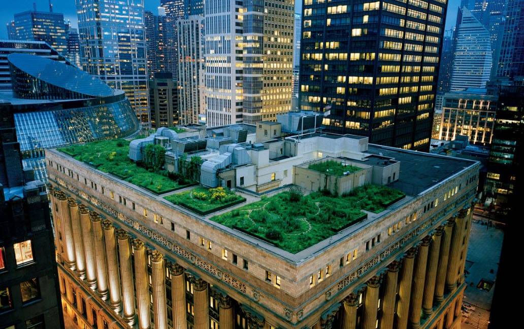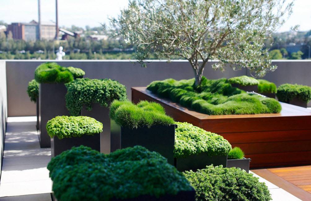 Зеленые насаждения на крыше здания