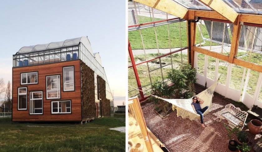 - Дом с теплицей на крыше выглядит оригинально и красиво.